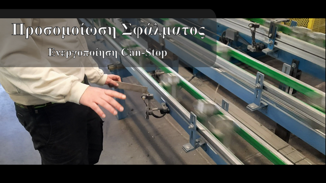 Στο video παρουσιάζεται ένα προσομοιωμένο σφάλμα στην γραμμή παραγωγής και το σύστημα ειδοποίησης στον υπολογιστή της μονάδας.